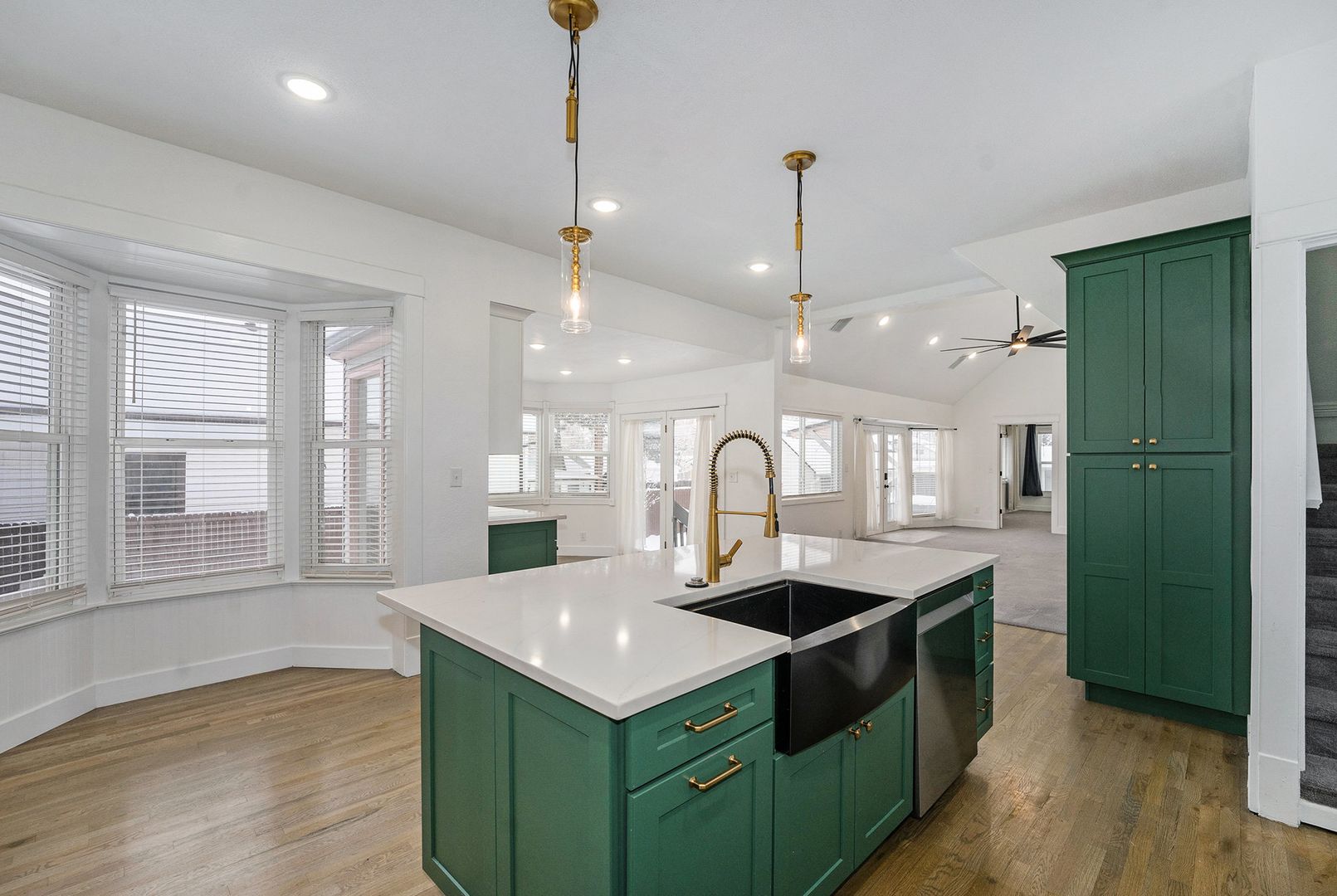Stunning 4-bedroom 2.5 bath single family home available in Edgewater across from Sloan's Lake. Brand new kitchen with stainless steel appliances including a smart refrigerator! The large center island is great for entertaining and provides ample counter space. New designer cabinets and farm sink with pull down gooseneck faucet completes the luxurious island. The kitchen extends into a breakfast nook with a dedicated bar area with a mini fridge! The kitchen flows easily into the living and entertaining space which also opens up to the back yard with double French doors.